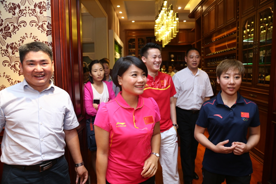 到場(chǎng)嘉賓與奧運(yùn)明星在帶領(lǐng)下參觀(guān)展廳