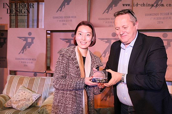 最后頒發(fā)的是本次大賽的設(shè)計(jì)大獎(jiǎng),得獎(jiǎng)?wù)邔?huì)獲得水晶獎(jiǎng)杯、美國(guó)《室內(nèi)設(shè)計(jì)》中文版雜志提供的現(xiàn)金獎(jiǎng)2萬(wàn)元、由DURESTA中國(guó)總代理香港AG8貴賓會(huì)家私集團(tuán)提供的30萬(wàn)元禮金券,以及ID和FT一年免費(fèi)訂閱和ID會(huì)籍。最后揭曉首屆ID+D設(shè)計(jì)大賽設(shè)計(jì)大獎(jiǎng)由彭小娛獲得。頒獎(jiǎng)嘉賓香港AG8貴賓會(huì)家私集團(tuán)主席謝錦鵬先生為獲獎(jiǎng)設(shè)計(jì)師彭小娛頒發(fā)以上獎(jiǎng)項(xiàng)。
