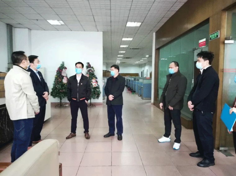 2月14日,在我司即將復(fù)工復(fù)產(chǎn)之際,中共石灘鎮(zhèn)黨委書記潘正煥先生、中共石灘鎮(zhèn)黨委副書記謝汝培先生等一行蒞臨我司石灘生產(chǎn)基地,指導(dǎo)疫情防控工作,在聽取匯報中詳細(xì)了解了我司疫情防控措施落實、疫情防護(hù)物資儲備、應(yīng)急預(yù)案制定和生產(chǎn)經(jīng)營、員工返崗等情況。集團(tuán)執(zhí)行董事兼首席執(zhí)行官楊俊先生帶領(lǐng)公司管理層進(jìn)行了接待。