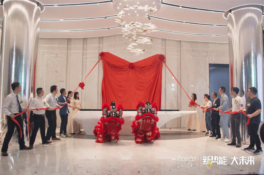 在鑼鼓喧天的樂聲和熱鬧非凡的舞獅中,嘉賓們莊嚴(yán)登場,落下神圣一剪,在場的經(jīng)銷商朋友們也紛紛舉起手機(jī),記錄下了這值得紀(jì)念的一刻。