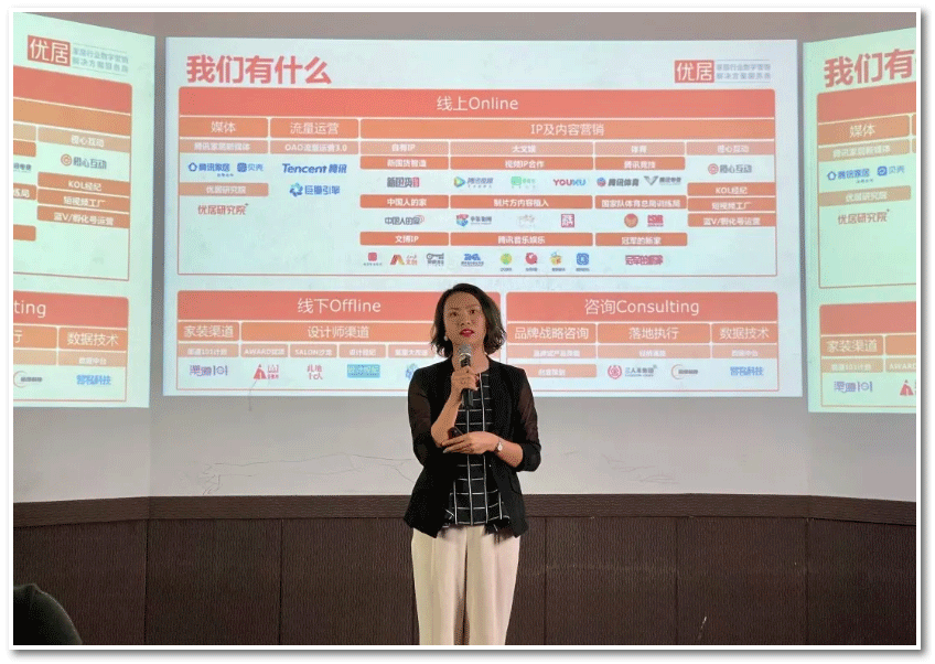 始于媒體,但不止于媒體。孔總簡(jiǎn)單給大家介紹了優(yōu)居,從媒體流量運(yùn)營 內(nèi)容營銷到咨詢服務(wù),優(yōu)居的專業(yè)水平都是行業(yè)內(nèi)的佼佼者。品牌讓產(chǎn)品更好賣,流量讓產(chǎn)品賣更好。從“品牌, 公域流量,運(yùn)營陣地,終端成交四個(gè)理論”,孔總解讀了家居數(shù)字新零售模型如何從品牌勢(shì)能輻射到終端成交,從而進(jìn)行經(jīng)銷商賦能。