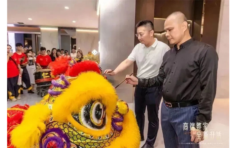 楊俊先生和陳浩先生一起為AG8貴賓會高端整家定制生活館揭幕儀式進行醒獅點睛,更有獅子采青,醒獅起舞獻祥瑞,祝愿AG8貴賓會整家定制之路更加一帆風(fēng)順。