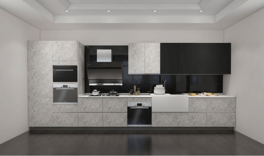 一家人溫馨的氛圍很大程度上得益于這款格調(diào)優(yōu)雅的櫥柜,一字型設(shè)計(jì),造型極為簡(jiǎn)約,黑色窄邊框玻璃門與大理石紋UV板相搭配,層次分明,簡(jiǎn)約明了,讓空間看起來更大氣,更整體。