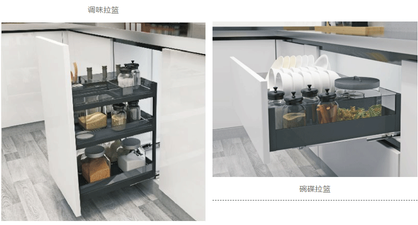 高深拉籃可以在有限的空間內(nèi)收納數(shù)量眾多的物品,在它的幫助下,櫥柜的縱深可以百分百地充分利用。