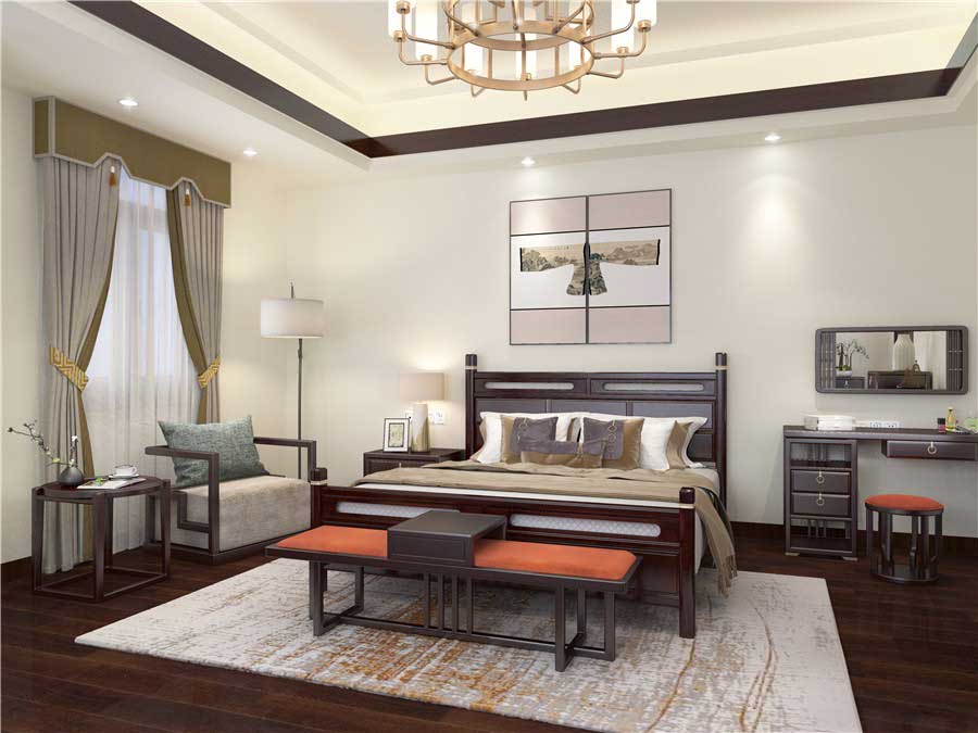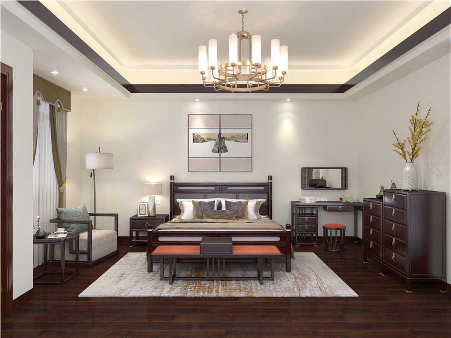 床由四根實(shí)木床腿支撐,暗含棟梁之才之意,床腿四角出頭,意喻出人頭地;休閑椅厚實(shí)穩(wěn)固,方正有度,體現(xiàn)出一家之主的不偏不倚、公平正直。
