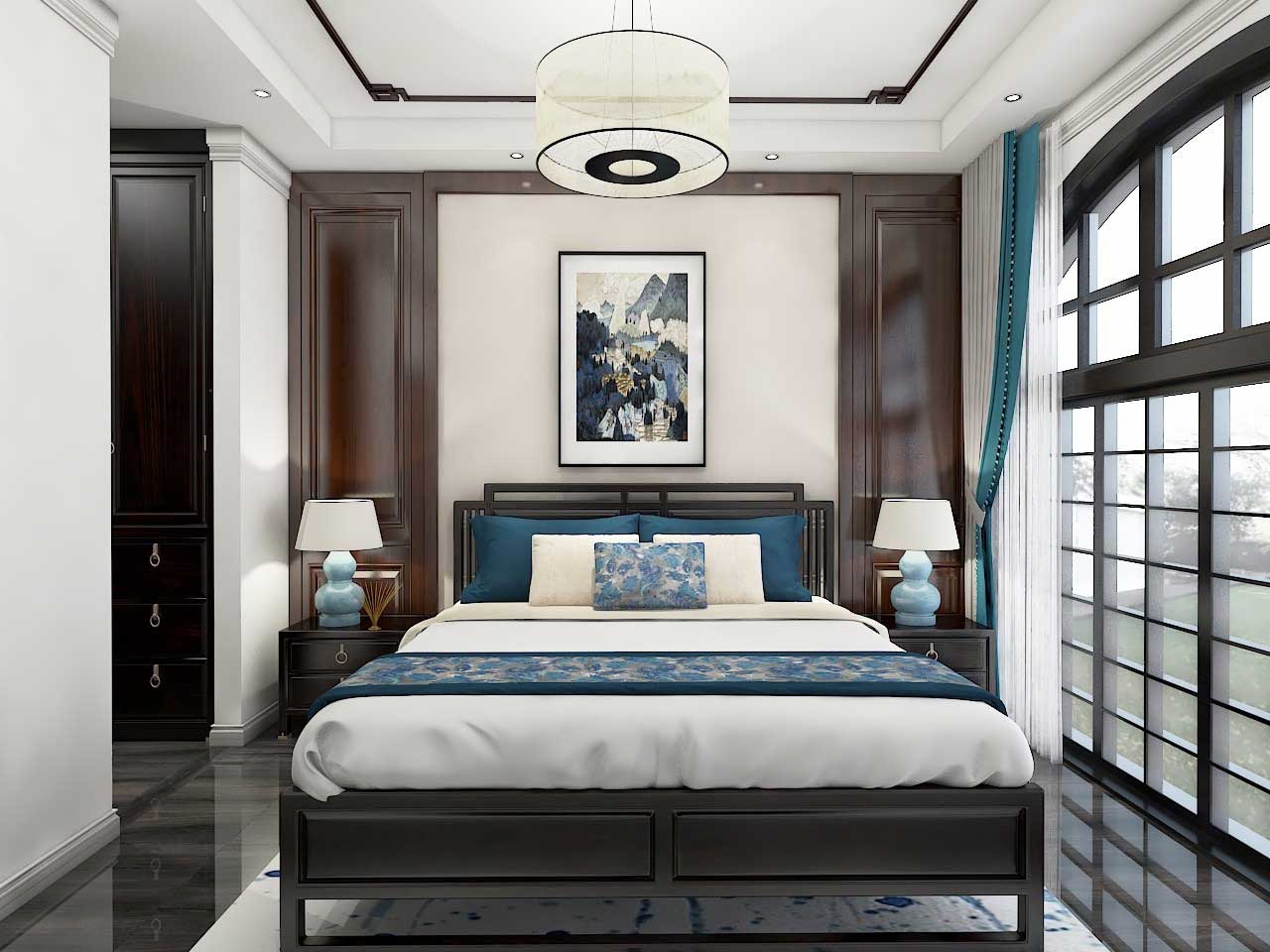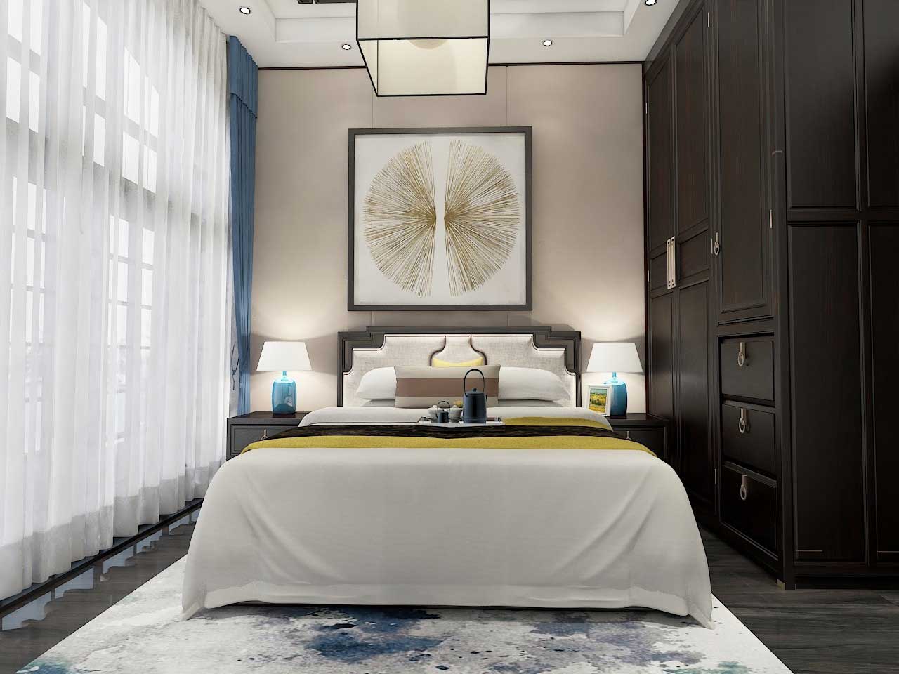 位于一樓的三間次臥風(fēng)格一致,裝修設(shè)計(jì)簡約大方,新中式的精美家具讓臥室多了幾分雅致韻味。無論是自家居住,或是招待來客,都很合適。