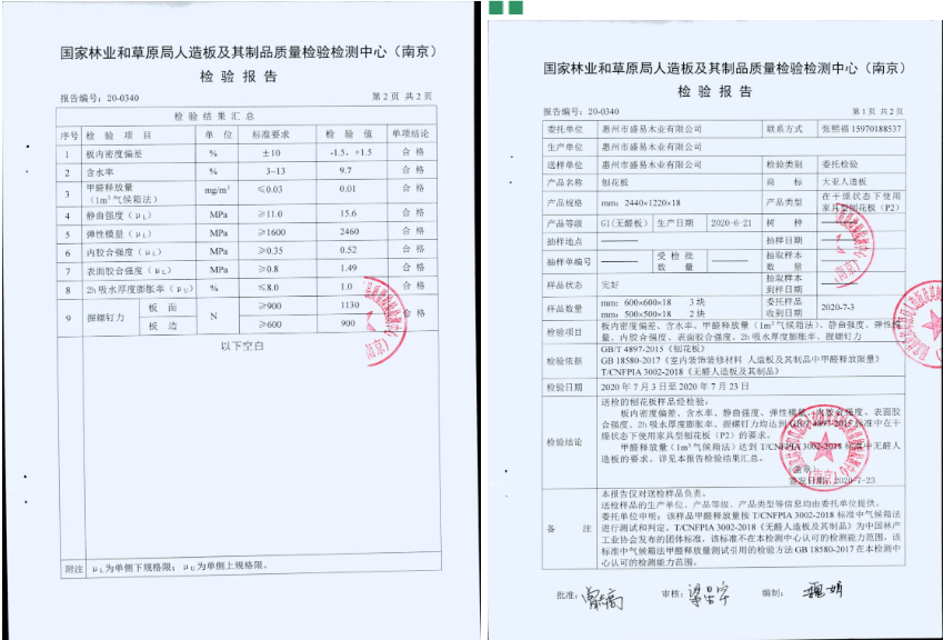 經(jīng)檢測(cè),纖維板各項(xiàng)性能指標(biāo)均達(dá)到GB/T11718-2009中防潮板的要求,吸水膨脹率低,耐水煮,可在標(biāo)準(zhǔn)規(guī)定的潮濕環(huán)境下使用。