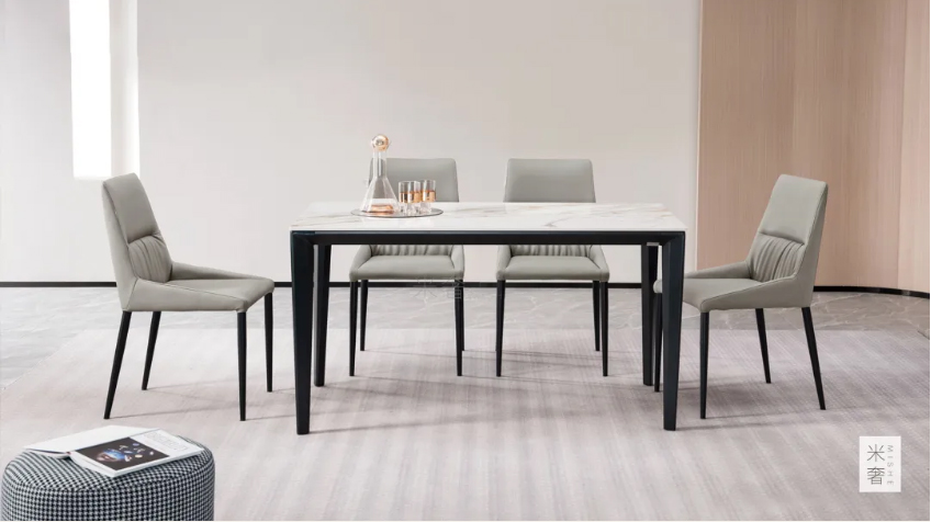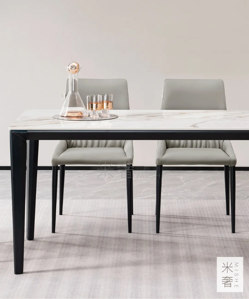 巖板具有耐高溫、耐腐蝕、耐刮磨、易清潔的特點(diǎn),兼具美感與實(shí)用性。用于餐桌上,擺脫了傳統(tǒng)家具的厚重感,使原本簡(jiǎn)潔的空間富有溫度。