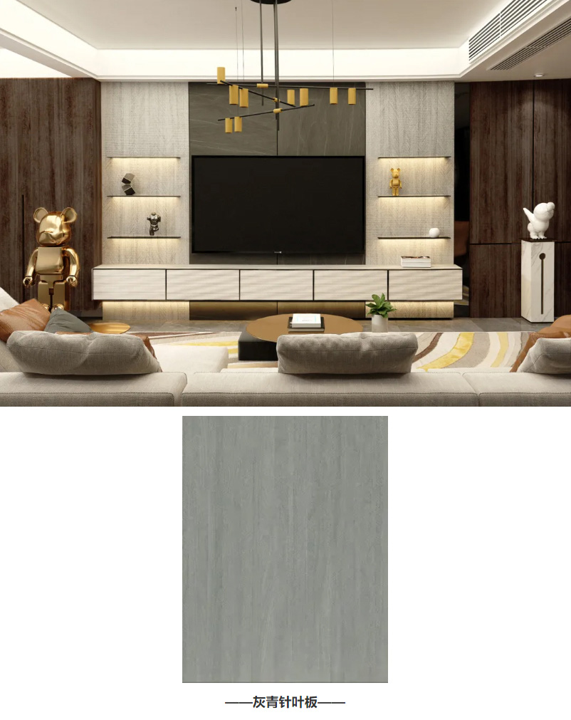 灰青針葉花色不僅有著自然的紋理,燈光打在門板上還能有一種波光粼粼的效果。