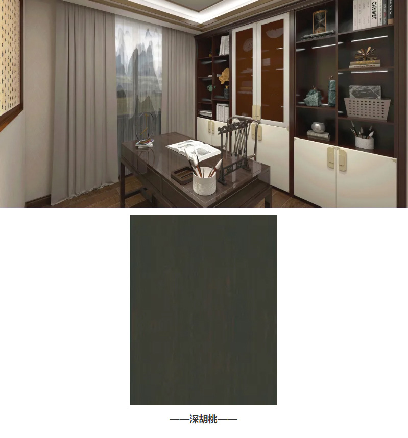 胡桃色素來百搭,但是在AG8貴賓會定制,深胡桃花色更偏向于穩(wěn)重的空間氛圍,所以常見于新中式風(fēng)格。