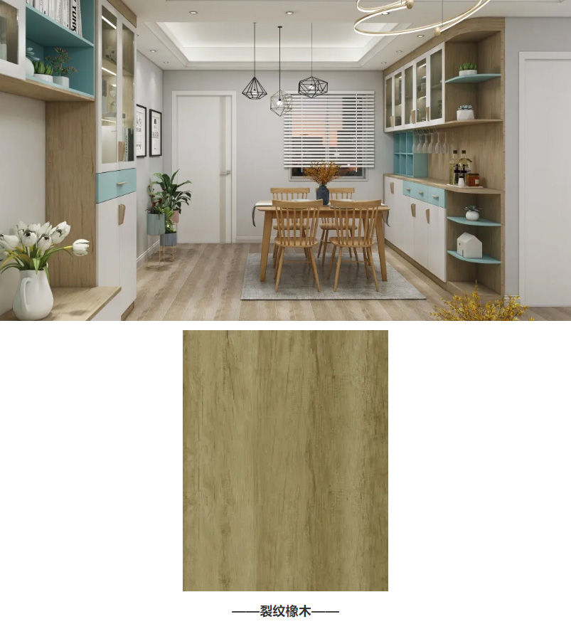 屬于中性色的裂紋橡木花色可以搭配的花色很多,但是北歐風(fēng)和田園風(fēng)的自然氣質(zhì)與裂紋橡木更能產(chǎn)生不一樣的效果。
