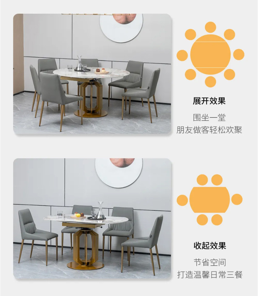 平時可滿足4-6人用餐,伸展后可滿足6-8人使用需求靈活多用節(jié)省空間