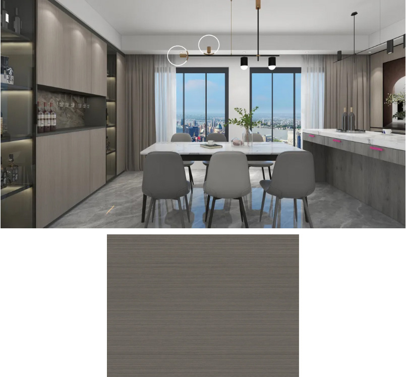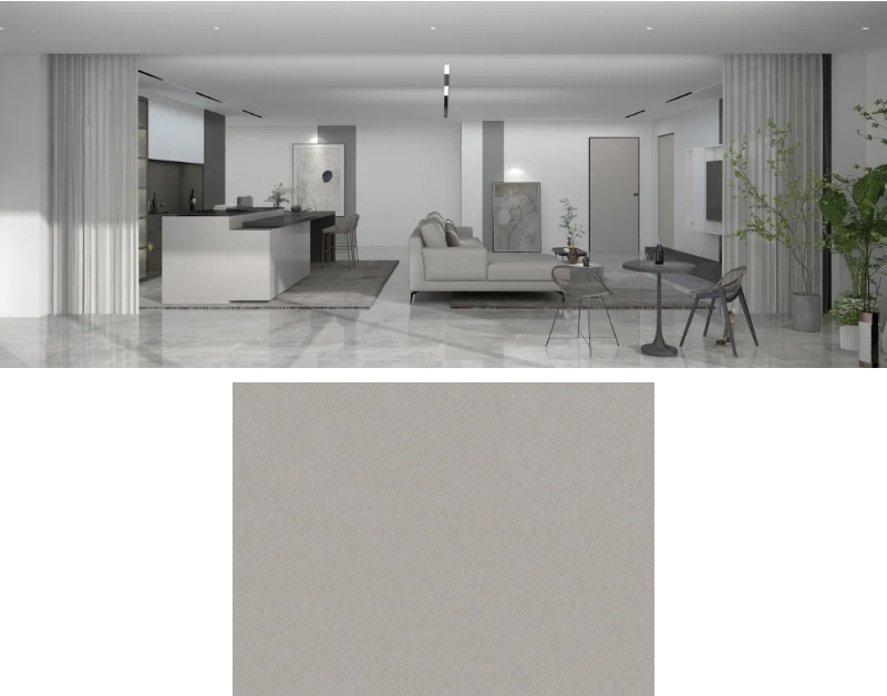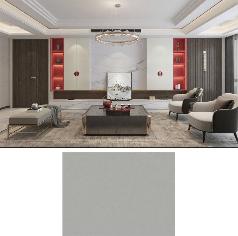 灰色中帶點(diǎn)金色調(diào),整體看上去十分柔和,且這款花色還帶了若隱若現(xiàn)的木材紋理。