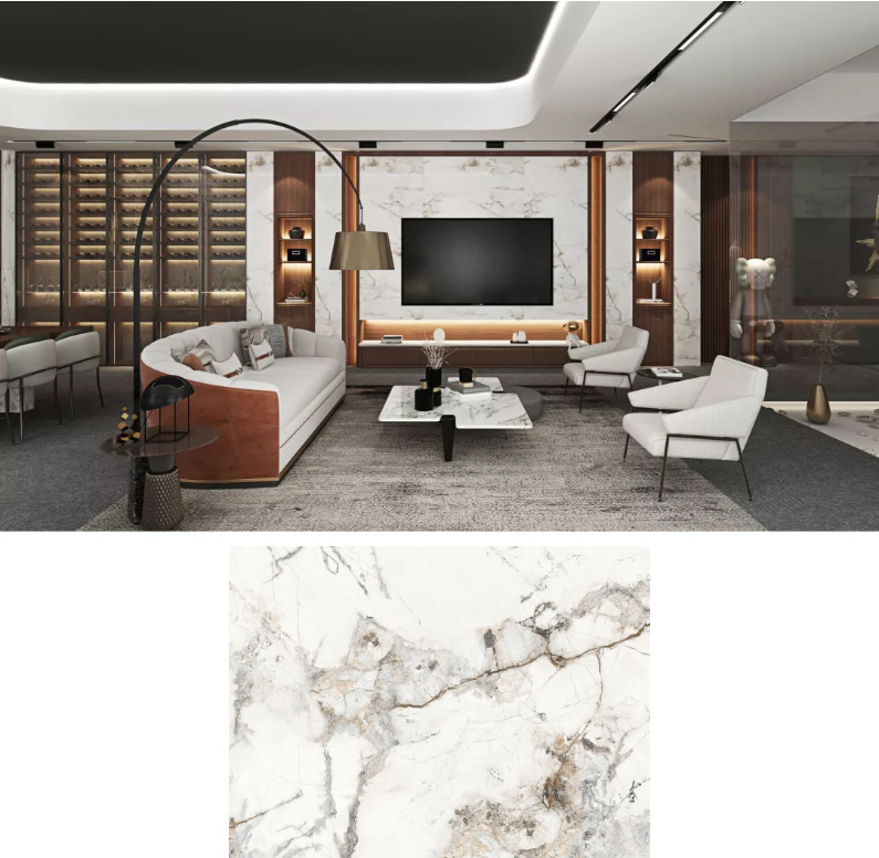 是空間的出彩點(diǎn)綴,半通透白底浮動(dòng)金色紋理呈現(xiàn)神秘高貴氣質(zhì),于空間中吐露出點(diǎn)點(diǎn)冷冽的質(zhì)感氣息,