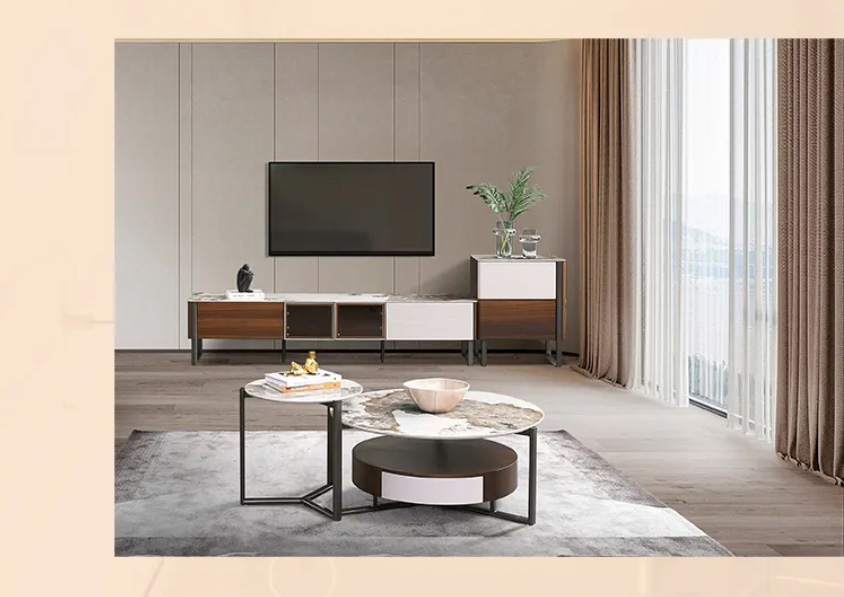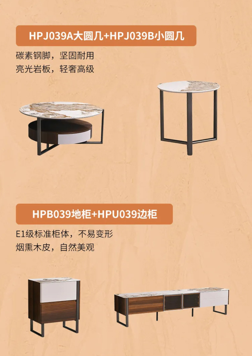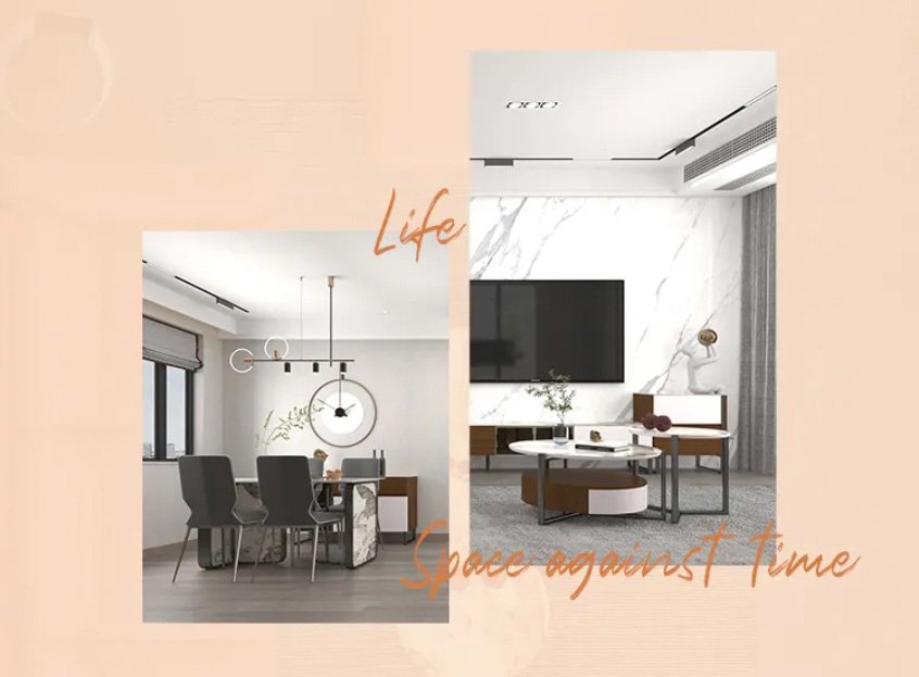 細膩溫潤的木紋與溫雅靈動的巖板自然交織