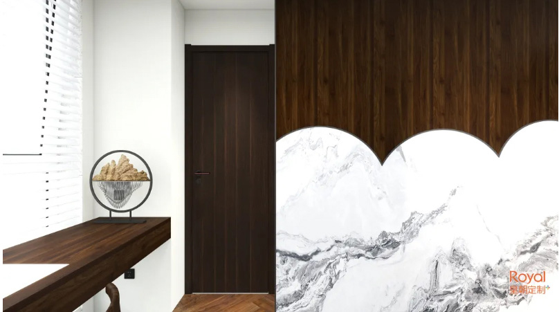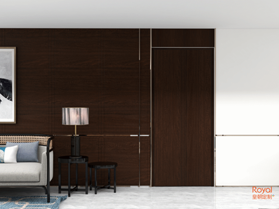 這是一款有著對比強烈的視覺效果的隱形門,紋理粗獷自然,頗有大氣磅礴之勢,風格上會更偏文藝。