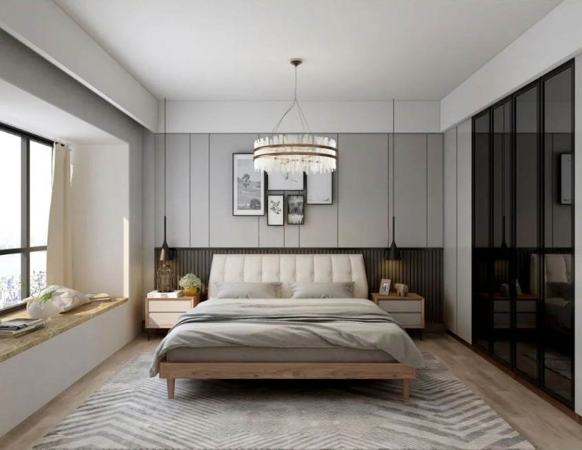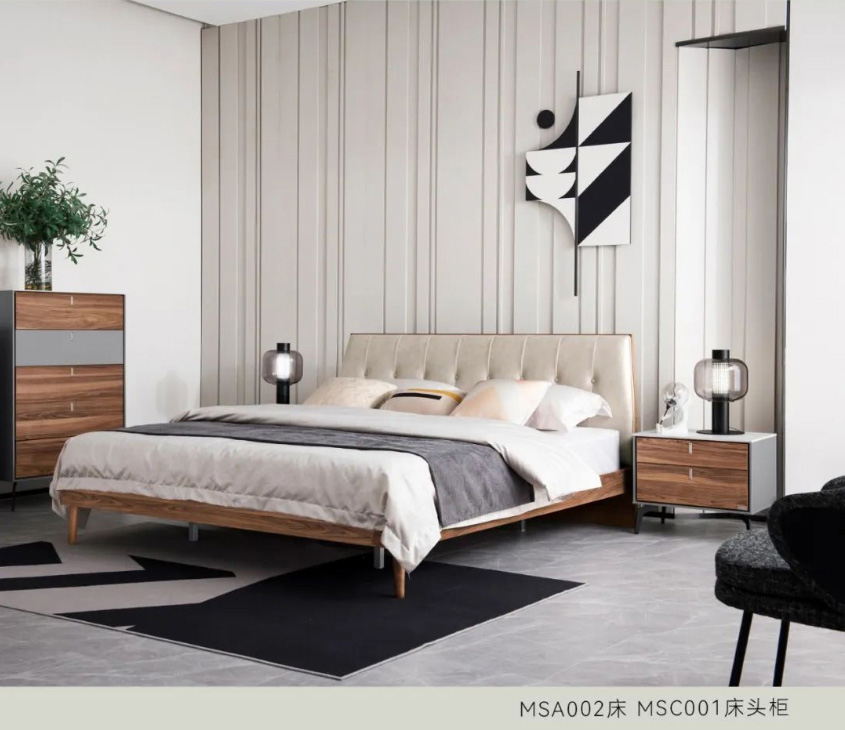 溫潤的原木色調,搭配經典意式床屏設計,烘托了臥室的靜謐舒適氛圍。