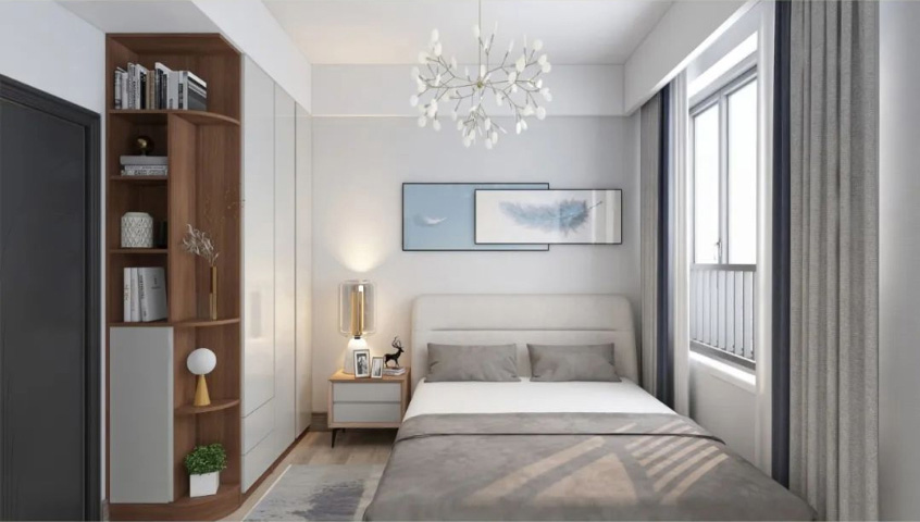 次臥強調了空間的收納功能,到頂的衣柜設計不易積灰。
