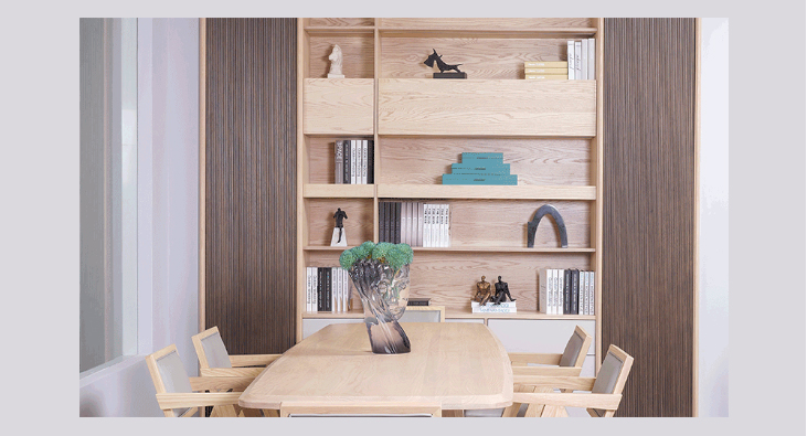 簡潔、安靜、自然、純粹,白蠟?zāi)臼菢O簡主義的“女神”;而米灰色仿若一位含蓄優(yōu)雅的紳士,舉手投足之間,盡顯含蓄優(yōu)雅。煙熏色營造出朦朧沉靜的暮色景象,就猶如優(yōu)雅與風(fēng)趣兩個(gè)靈魂,命中注定般相遇的那個(gè)醉人傍晚。