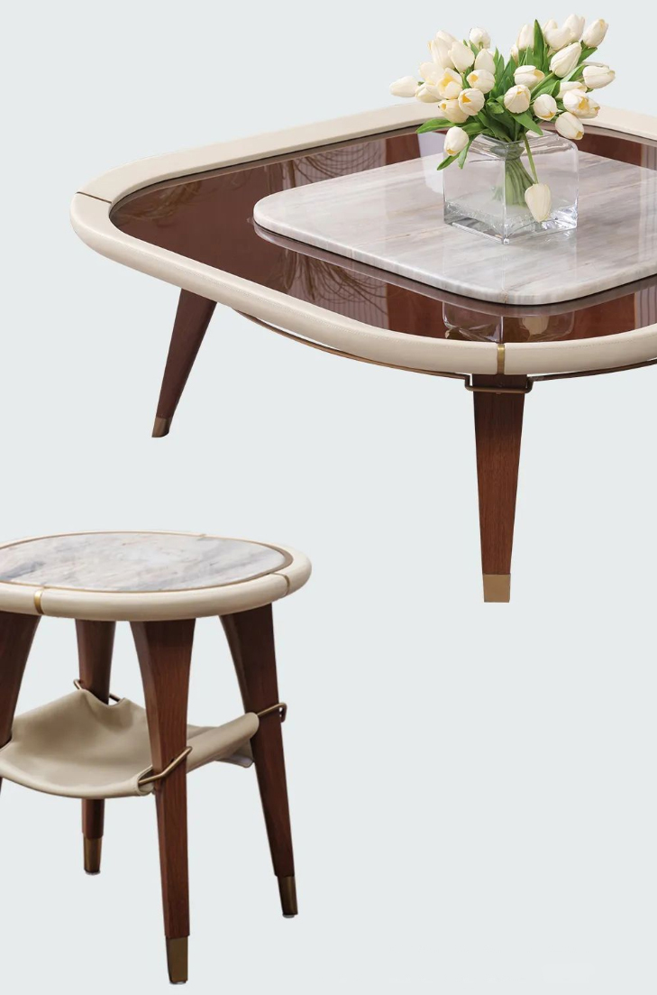 實木、皮革、玻璃、大理石