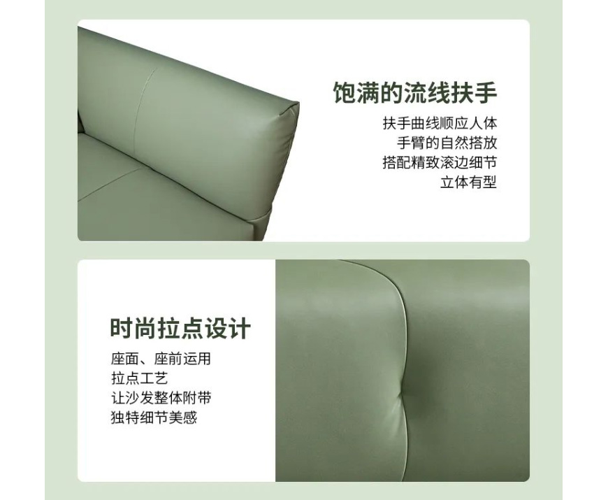 沙發(fā)整體線條自然流暢,座面時(shí)尚拉點(diǎn)設(shè)計(jì),勾勒出沙發(fā)的流暢輪廓感,美觀而富有設(shè)計(jì)感。