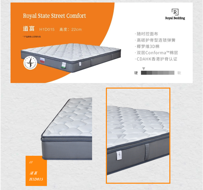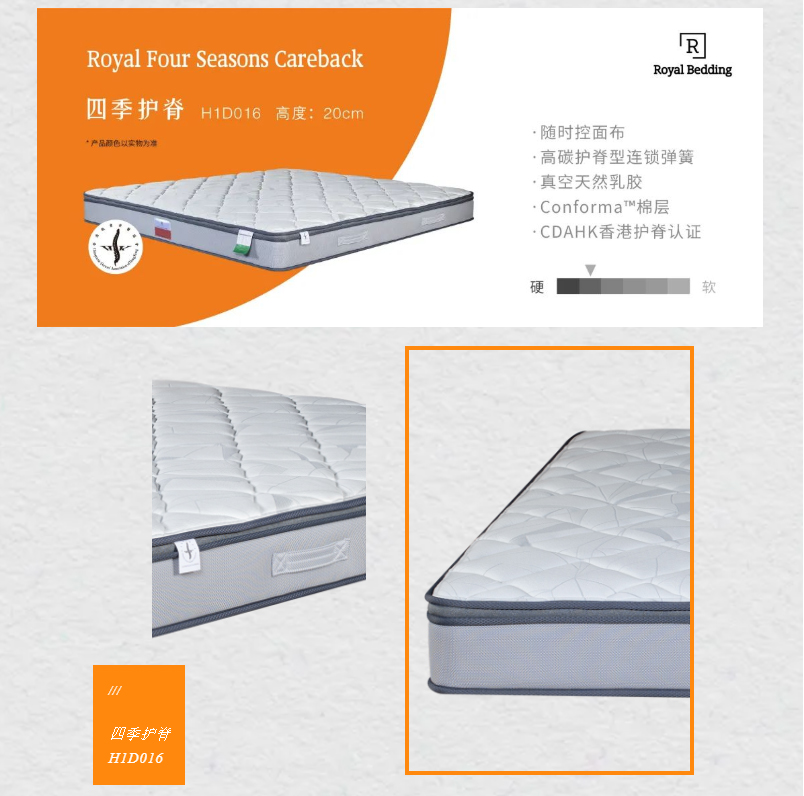 采用高碳護(hù)脊連鎖彈簧,整體睡感偏硬