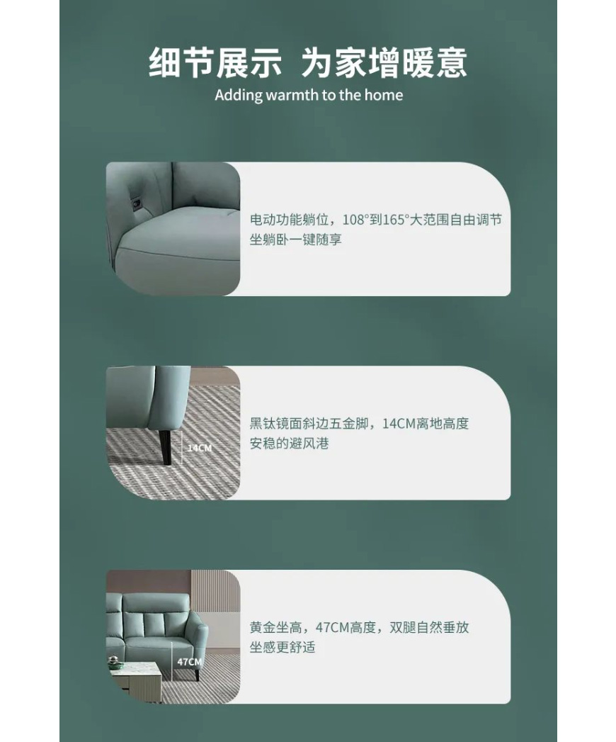 寬厚扶手:微微外張的曲線,貼合手臂自然垂放,精致捏邊細節(jié),勾勒生活維度