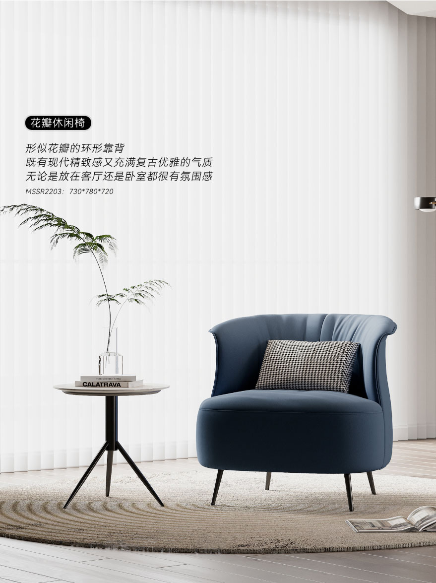 ⑤ 花瓣休閑椅:形似花瓣的環(huán)形靠背,既有現(xiàn)代精致感又充滿復(fù)古優(yōu)雅的氣質(zhì),無論是放在客廳還是臥室都很有氛圍感。