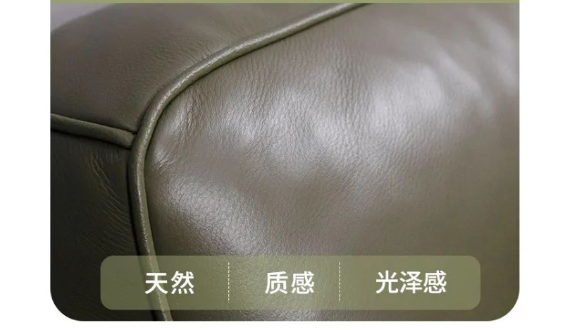 接觸面中厚頭層黃牛皮面料,自然摔工藝處理皮質(zhì)厚實柔韌,肉感細膩,具有自然光感