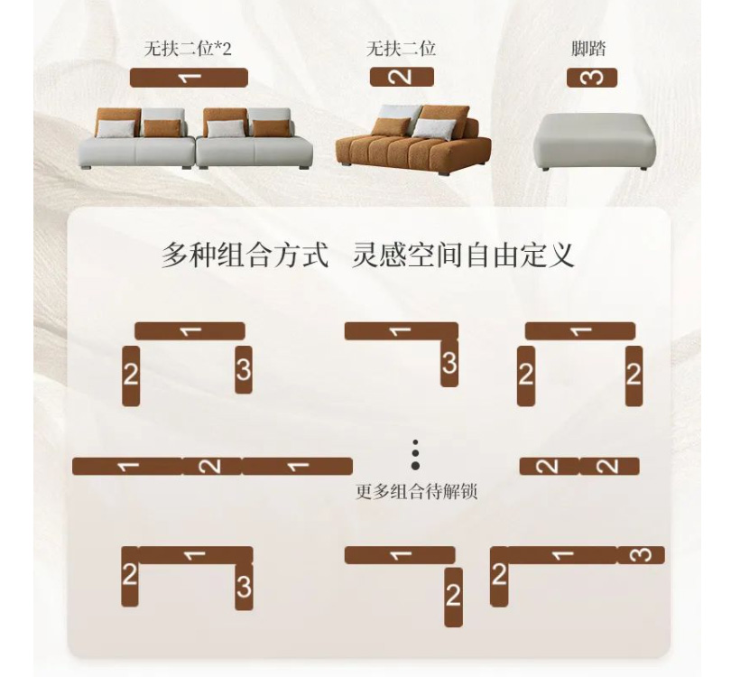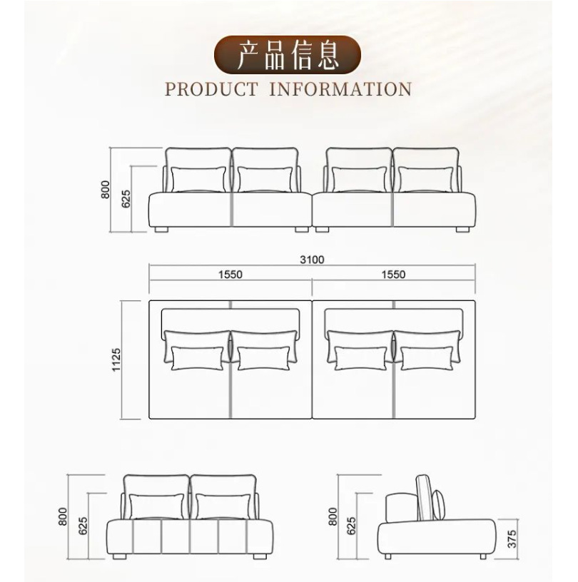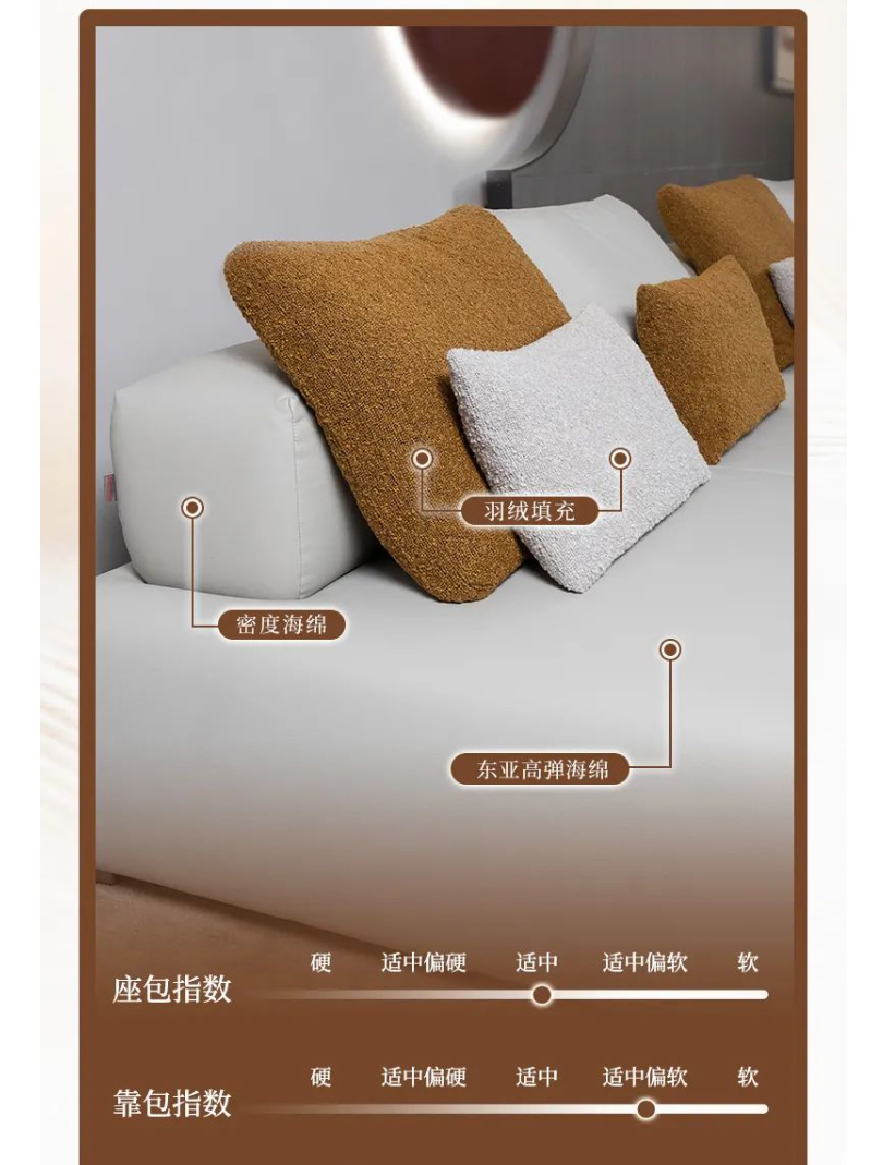 云皮2.0、棉麻、東亞海綿、羽絨、煙灰拉絲五金腳、全實木框架結(jié)構(gòu)
