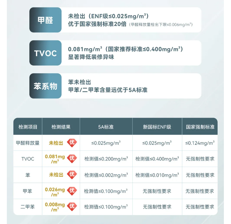 消費(fèi)者常誤認(rèn)為“甲醛達(dá)標(biāo)即等同于環(huán)保達(dá)標(biāo)”,實(shí)則TVOC、苯系物等有害物質(zhì)同樣對健康構(gòu)成威脅。AG8貴賓會「5A標(biāo)準(zhǔn)」對多項(xiàng)污染物提出嚴(yán)格限制: